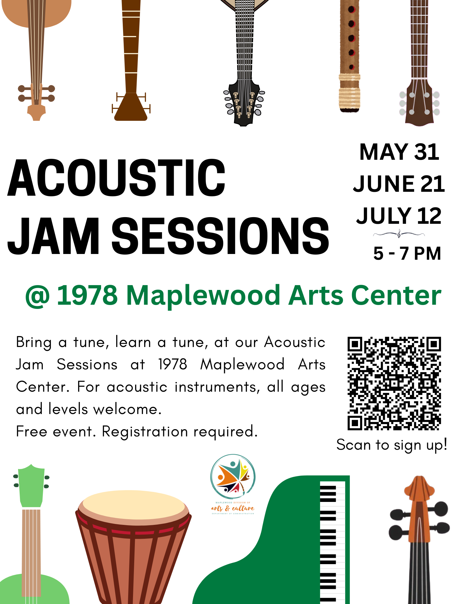 Join us to share a tune and learn a tune at the open acoustic jam session! A welcoming space to share and learn tunes, open to all ages and levels, led by veteran teacher and touring musician Amy Beshara.
